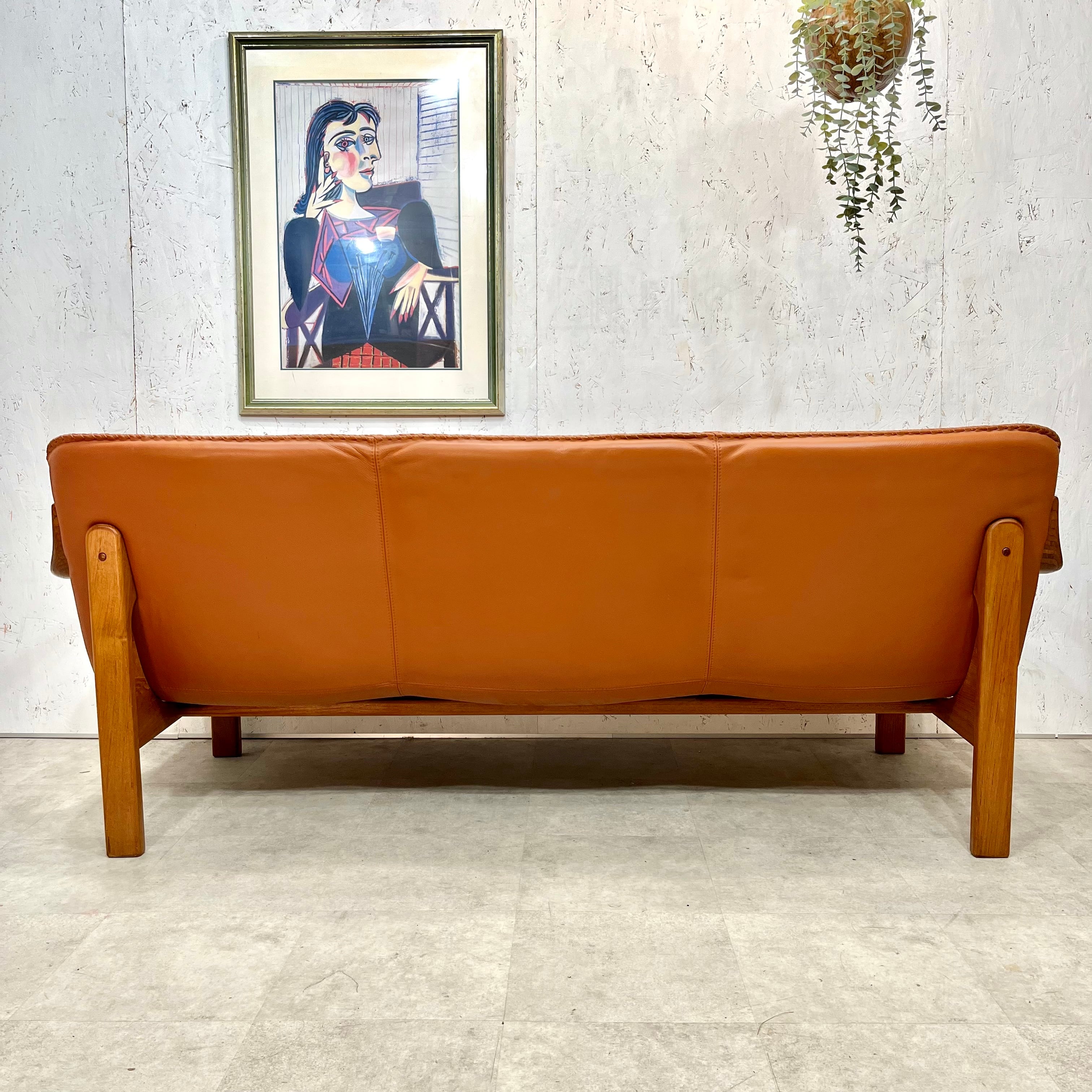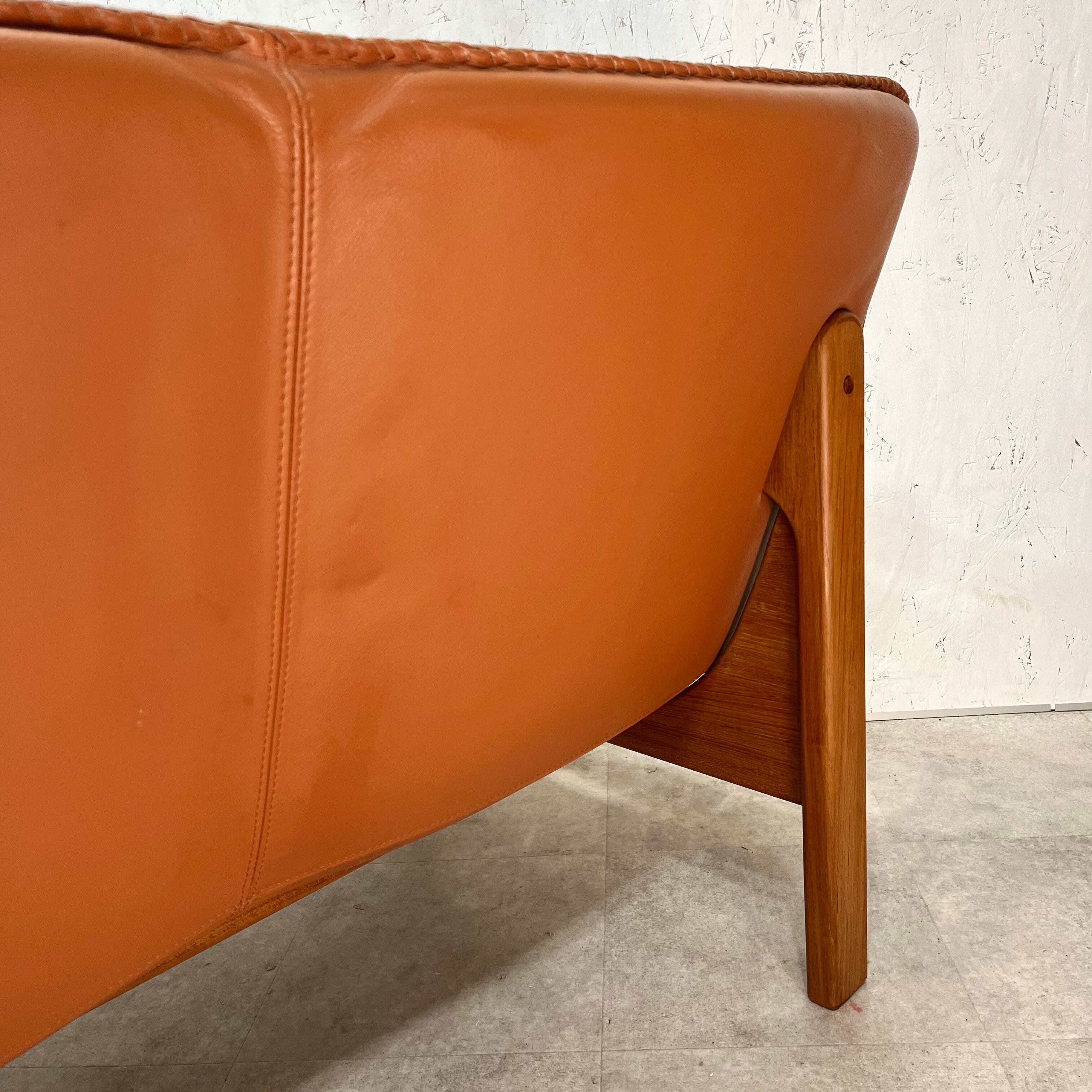 コニャックカラーの本革に、希少なチーク無垢材の脚を使用した上品且つ機能的な逸品、北欧デンマークの ベルグファニチャーのローバックペルクラシックです。