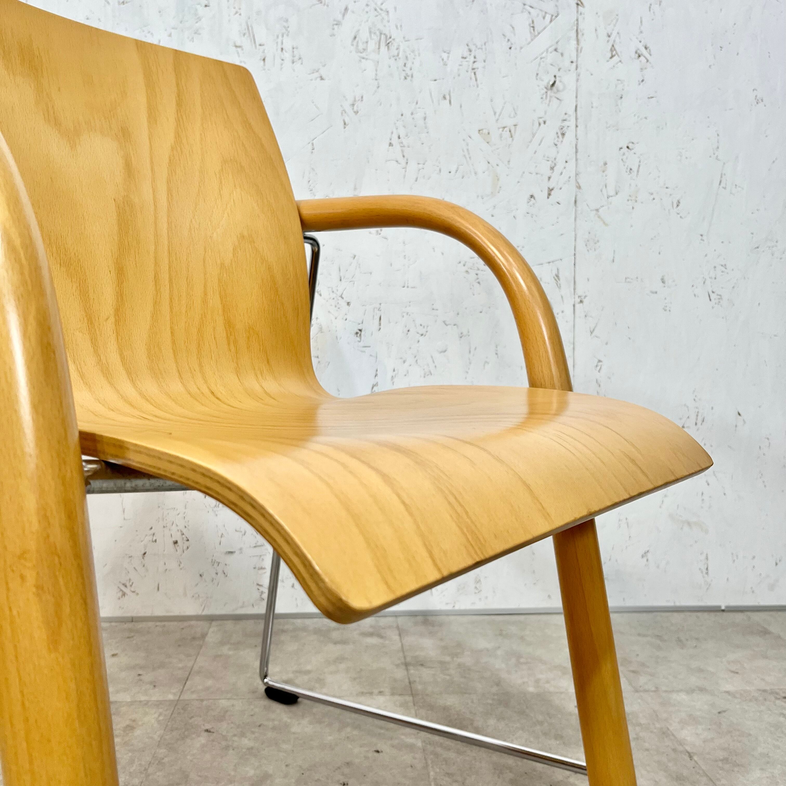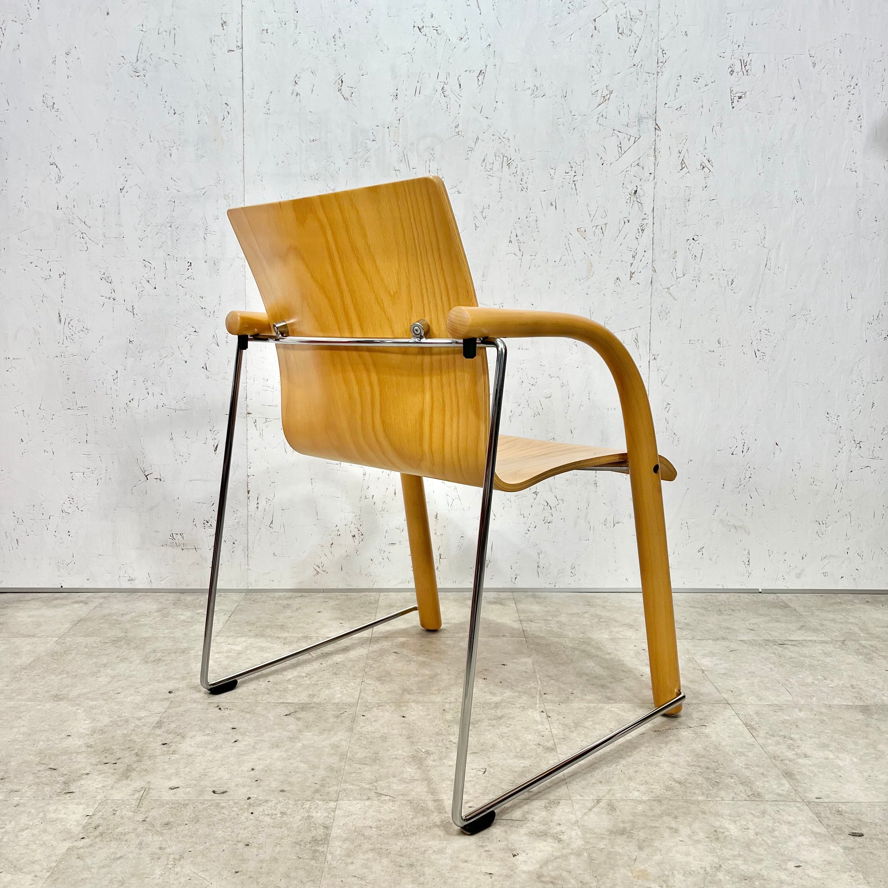 本家THONETの曲木のセミアームに、スチールフレームが合わさって浮いている様なデザインのスタッキングチェアです。